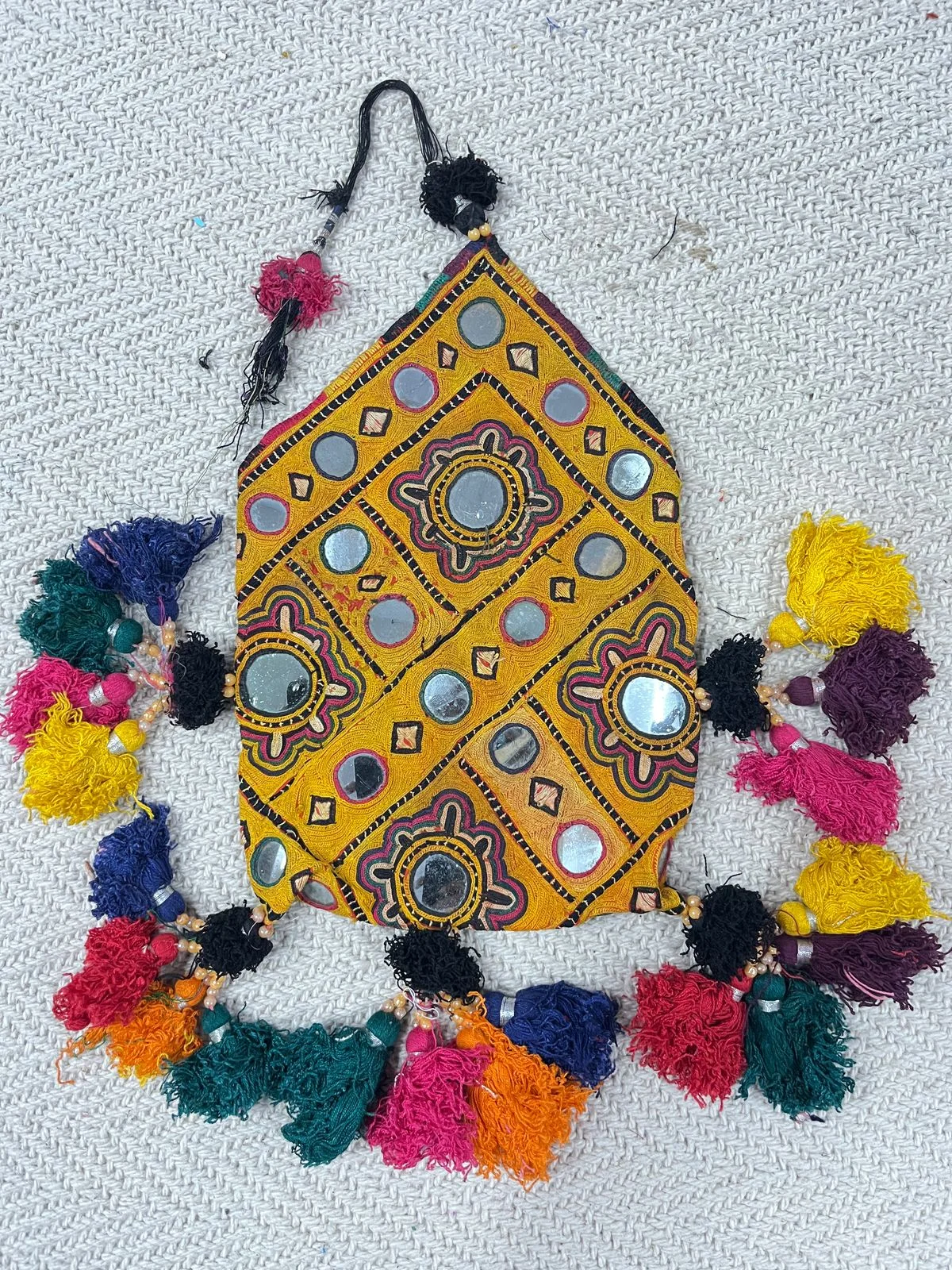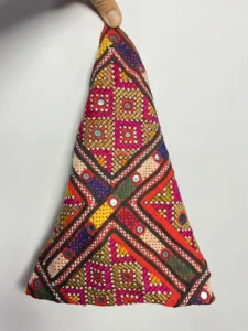Our collection features intricately handcrafted items like the bhujki (or bujhki) dowry bags of Kutch and Sindh, adorned with traditional techniques such as finest embroidery, beaten golden resham threadwork, big and small mirror inlays, and delicate beadwork. These heirloom-quality textiles, dating from the mid-20th century and earlier, showcase the incredible skill and heritage of the artisans who made them.